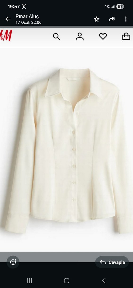 H&M Düğmeli, V yaka ve uzun kollu beyaz kadın gömleği. normal kesim . ✨HM 42 beden krem rengi V yaka saten gömlek sadece 1 kez giyildi sorunsuzdur ihtiyaç fazlası olduğundan satışa koydum