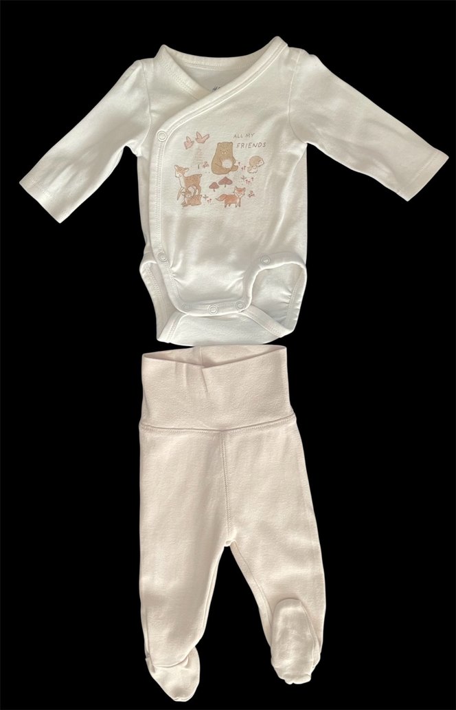 2’li set: Uzun kollu çıtçıtlı body ve ayaklı pantolon %100 pamuk, yumuşacık, rahat ve organik kumaş. Çok az kullanıldı, tertemiz, leke ve deformasyon yok. Hem günlük kullanım hem de hastane çıkışı için ideal.