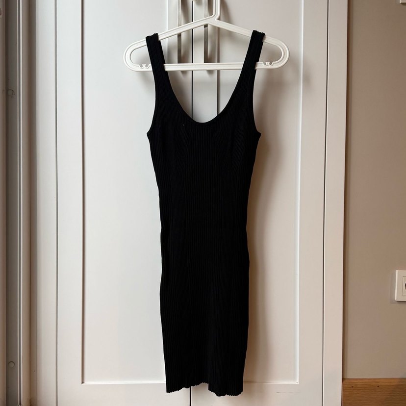 HM - Viskoz karışımlı lastik örgülü, bedene oturan siyah elbise - Omuzdan itibaren uzunluk 85cm. Hiç giyilmemiştir