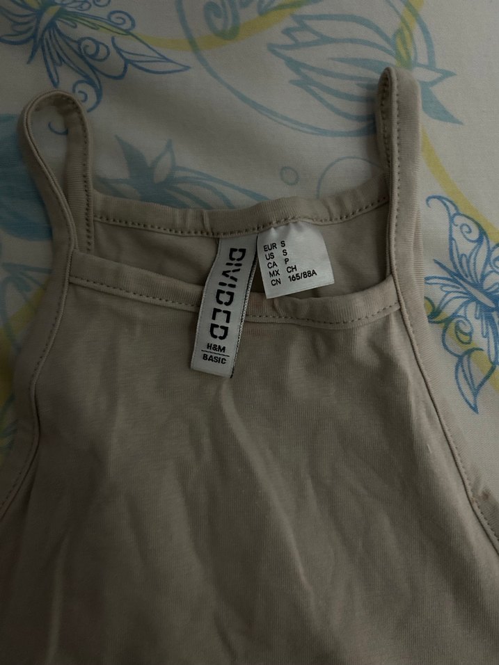 Divided by H&M markasına ait bej renkli, fitilli ve askılı basic Crop, rahatlık sağlayan yumuşak kumaştan üretilmiştir.