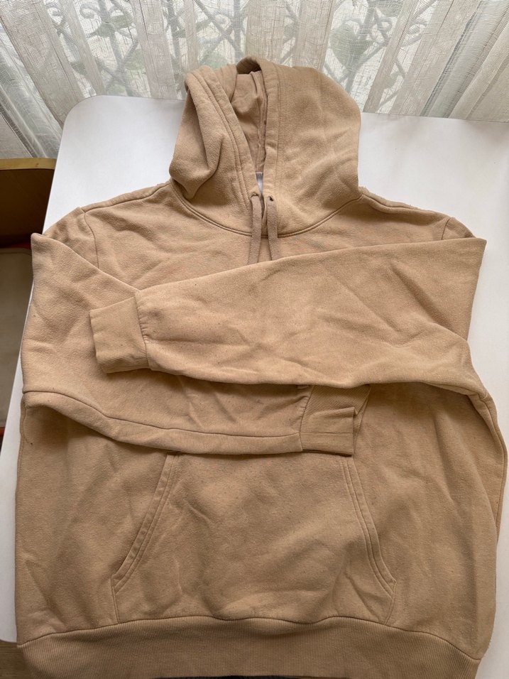 Bej kapüşonlu, düz renk, uzun kollu ve bol kesim kadın sweatshirtü, yumuşak ve sıcak kumaştan üretilmiştir. Kanguru cepli, içi polar, sade ve günlük sokak stili için uygundur.