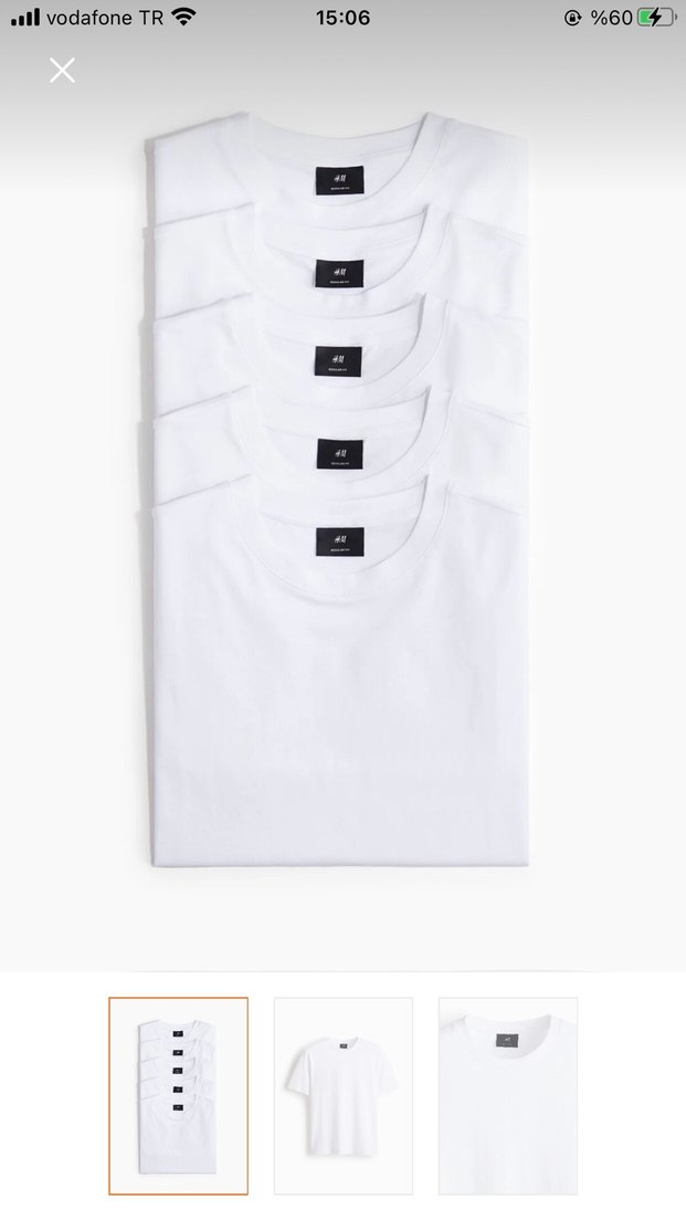 H&M Beyaz Erkek Basic Pamuklu Tişört 5'li Paket