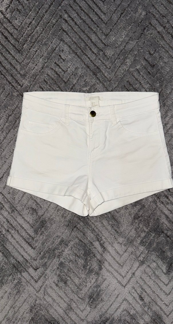 H&M 34 beden Yumuşak pamuktan yapılmış beyaz, vücuda oturan mini şort. Desensiz, rahat dış mekan sokak stili için uygun. %97 pamuk %3 elasten yapısıyla esnek rahat bir konfor sunuyor giyindiğinizde. Deformesi yoktur Bel 36 cm Boy 25 27 cm civarı