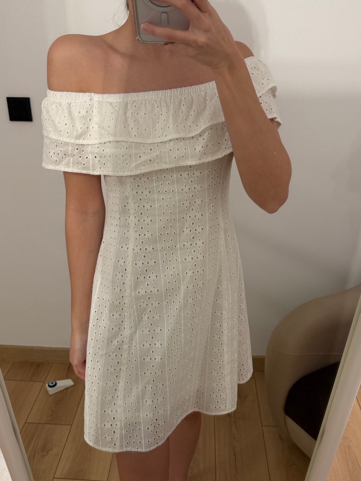 H&M Beyaz Nakışlı mini Elbise