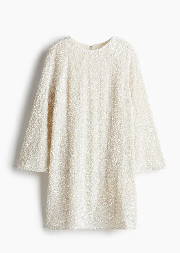 H&M beyaz pullu elbise