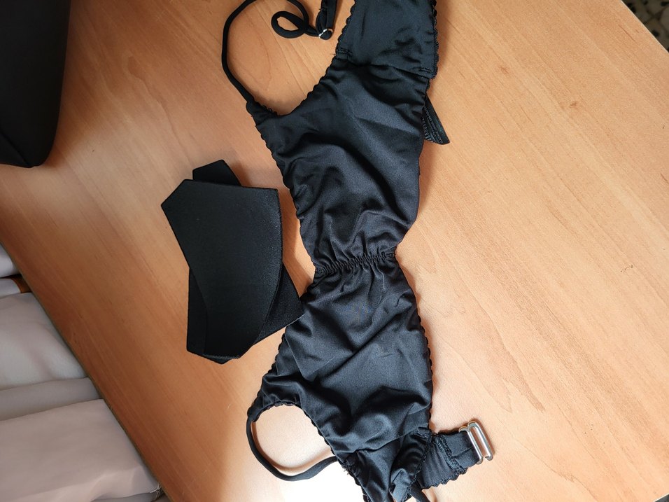 Siyah renkli, fırfırlı detaylı ve askılı kısa kesim, fitted monokini. Goth avant-garde tarzını yansıtır. Düz ve pürüzsüz yüzeyli.