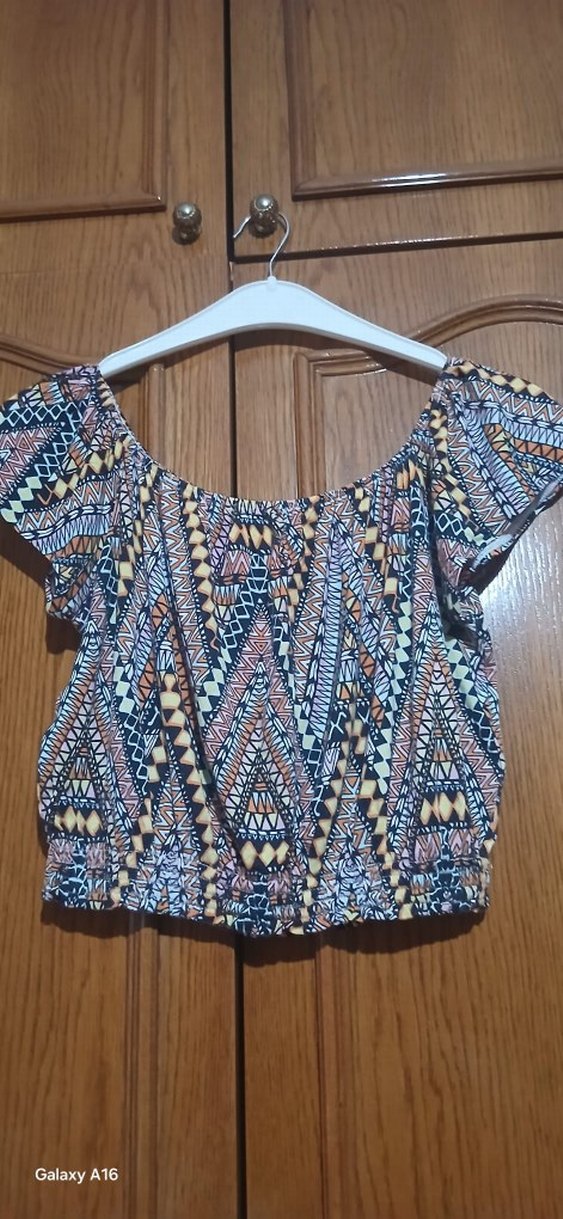 Bohem tarzı kadın bluz, tekne yaka ve kısa kolludur. Gevşek kesim, mini boy ve pastel çok renkli batik desenli tekstil kumaştan, günlük kullanım için uygundur.