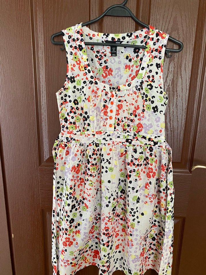 H&M marka, yurt dışından alındı. Renkli çiçek desenli, kolsuz ve V yakalı elbise, fırfır detaylarıyla bohem tarz sunar. Yumuşak %100 pamuklu kumaştan yapılmıştır. Yandan fermuarlı ve belinde kuşağı vardır. Bel kısmı oturur, alt kısmı hafif kloş modeldir. Yazın rahatlıkla kullanabileceğiniz bir üründür. İç astarı yoktur ama iç göstermez. Belden oturan modeliyle çok zarif durur. Hem gündelik hem de tatil kombinleri için uygundur. Hızlı kargo, özenli paketleme yapılır. Çok az kullanıldı yeni ve tertemizdir. Her hangi bir deforme yoktur. Alana hayırlı uğurlu olsun. #hmelbise #çiçekdesenli #yazlıkelbise #elbisesatışı #38beden #mbeden #uygunfiyat #azkullanılmış #ikincielselbise #gardropsatış #trendyazlık #dolapsatış #elbise38 #kadınelbise #hafifkumaş #pamukaçık #şıkvekonforlu