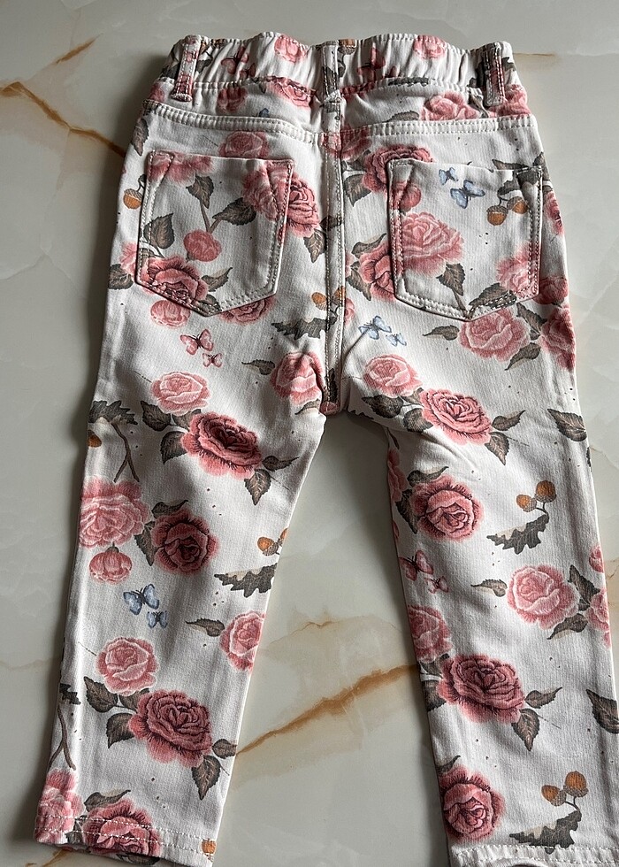 Çiçek desenli 9-12aylık pantolon yırtığı söküğü yok. Tertemiz ürün .