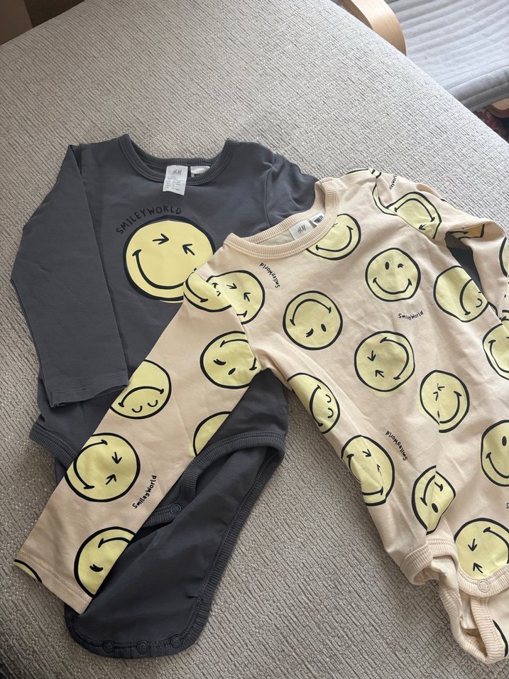Pamuklu kumaştan, uzun kollu, gülen yüz baskılı bebek bodyler. Gri ve sarı renk seçenekleri, yuvarlak yaka tasarımıyla rahat. 12-18 ay Etiketi yok ama hiç giydirilmedi, TERTEMİZ