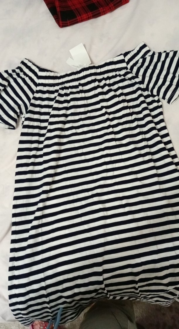 H&M Çizgili, Kayık Yaka, Kısa Kollu Midi Elbise