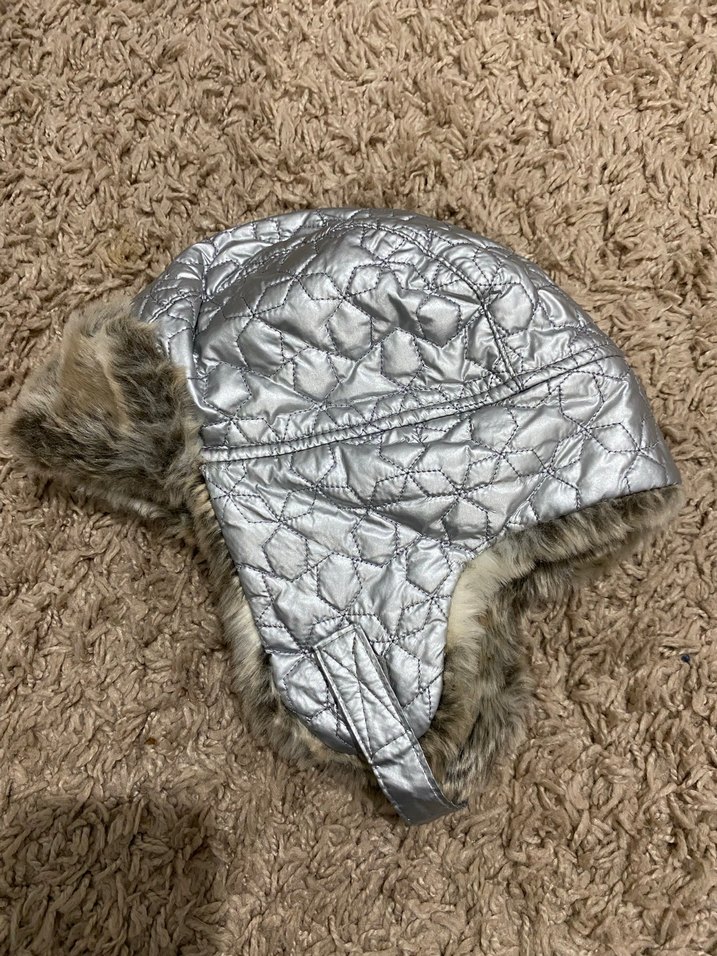 H&M çocuk Gri sentetik kumaştan, nakışlı desenli ve kürklü astarlı kapüşonlu, kışlık kadın şapkası. Sıkı oturan, dış mekan kullanımı için uygundur.