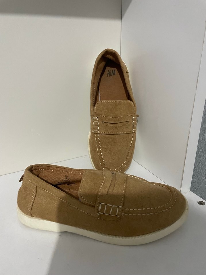 Bej süet malzemeden, tokalı ve beyaz tabanlı erkek çocuk ayakkabısı, günlük sokak stili için uygun.
