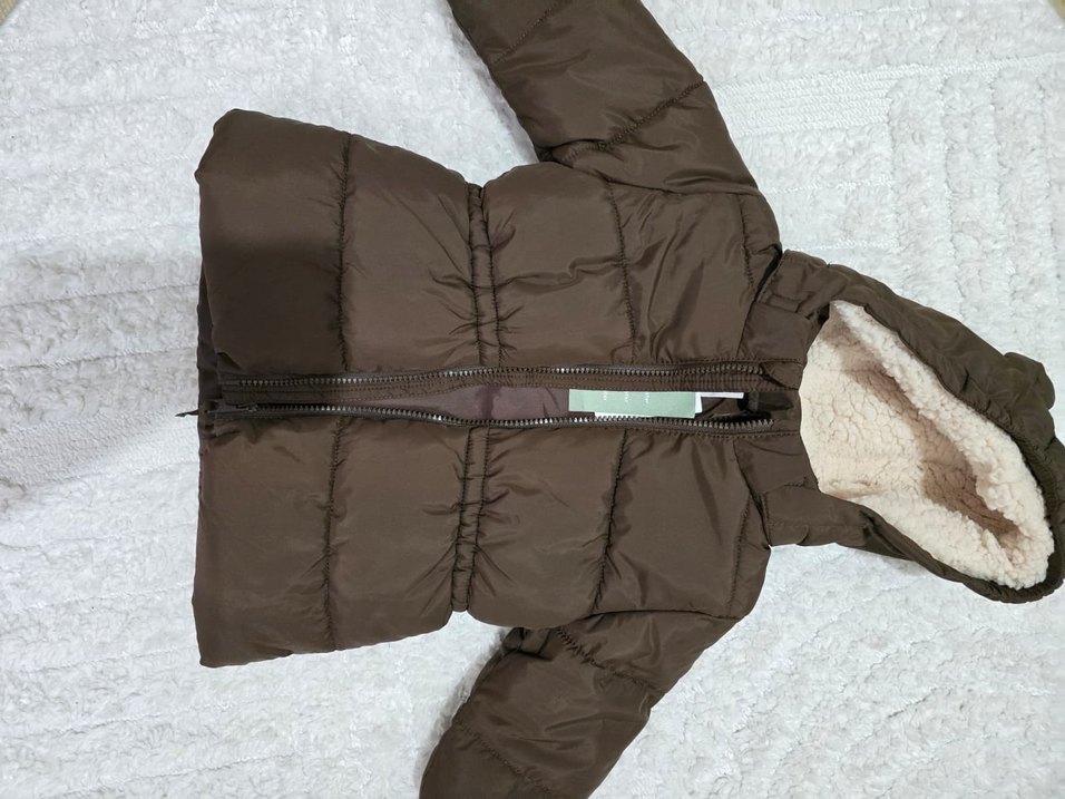 Etiketli yeni kahverengi kışlık mont. Bu havalarda sıcacık tutar.9-12 aya uygundur. Güzel günlerde kullanın.