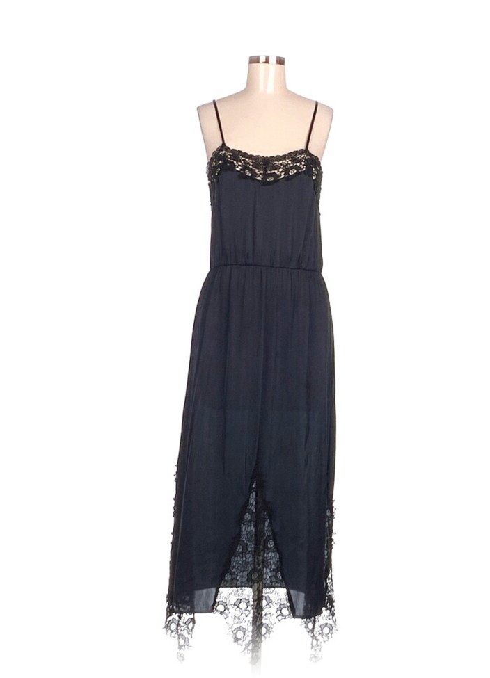 H&M Dantel Detaylı Lacivert Askılı uzun Elbise iade yoktur