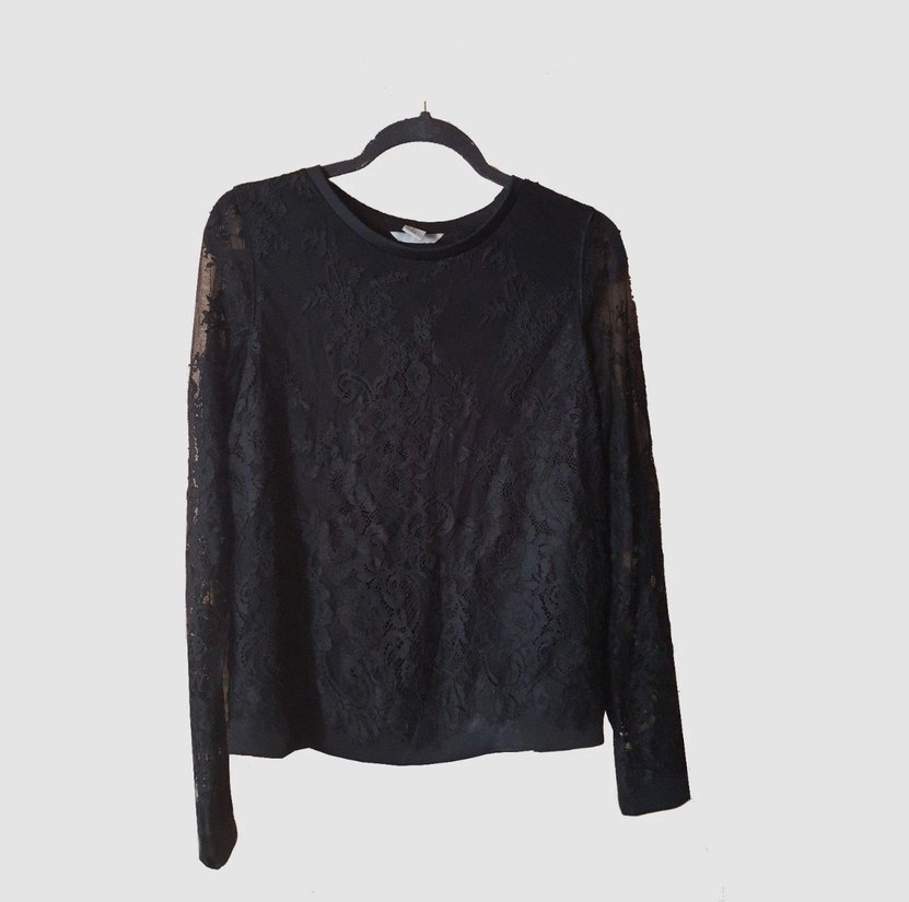 H&M Dantel Detaylı Siyah Uzun Kollu Bluz