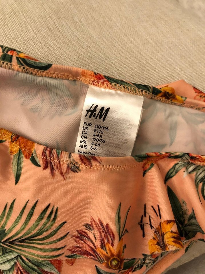 H&M markalı, bej renkli, desenli ve sentetik kumaştan üretilmiş mayo çocuk için 5 6 yaş