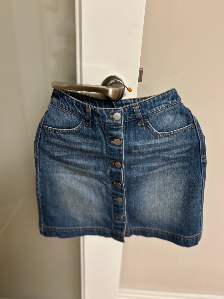 H&M Düğmeli Mavi Denim Mini Etek