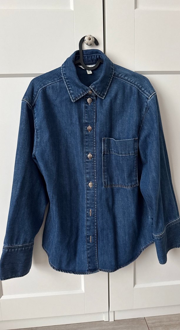 H&M Düğmeli Mavi Kadın Denim Gömlek