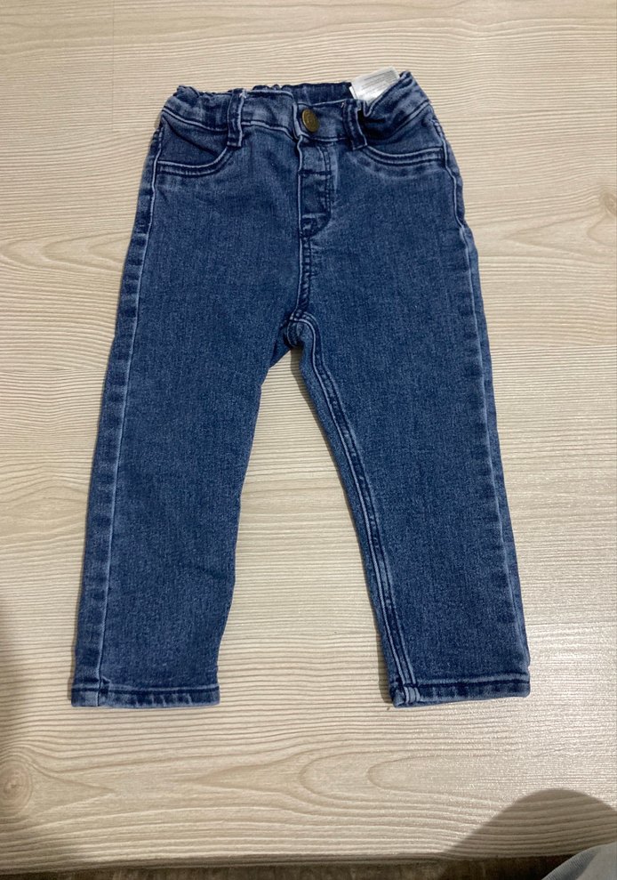 Düğmeli, düz mavi kot kumaştan yapılmış, regular fit pantalon.12-18 ay için uygundur