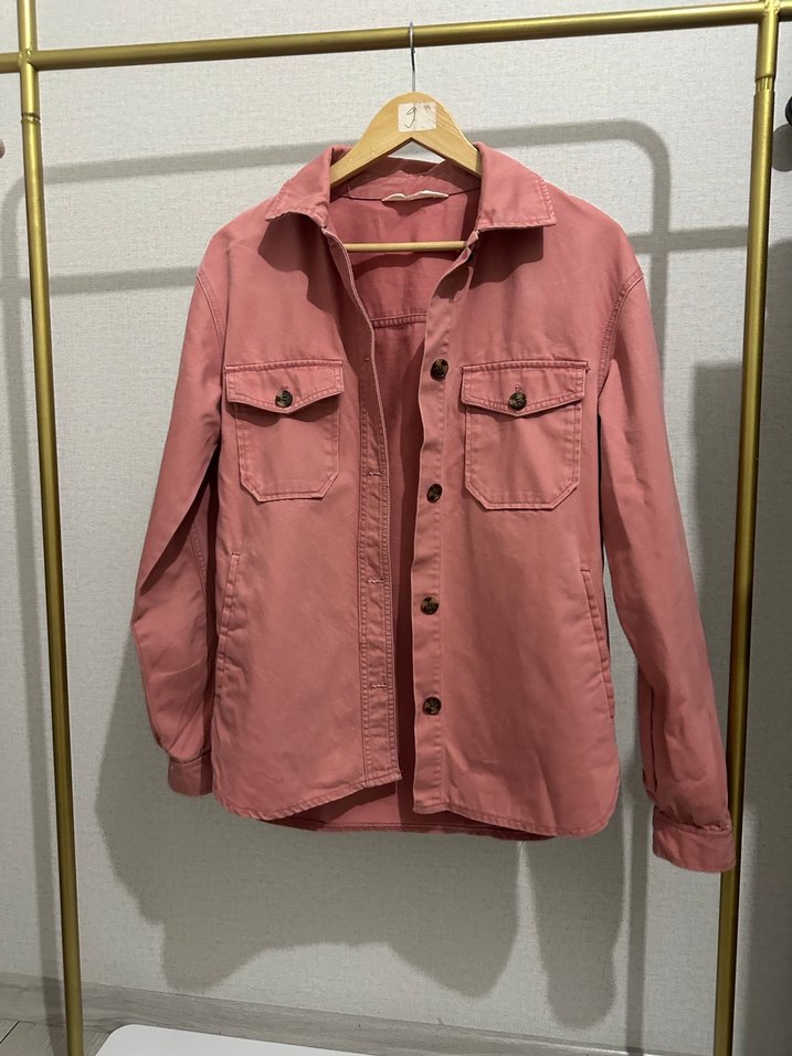 Düğmeli önü ve uzun kollu, notched lapel yakalı pembe, bol kesim kadın ceket. Pürüzsüz sentetik kumaştan, günlük rahat kullanım için uygun. Hatasız