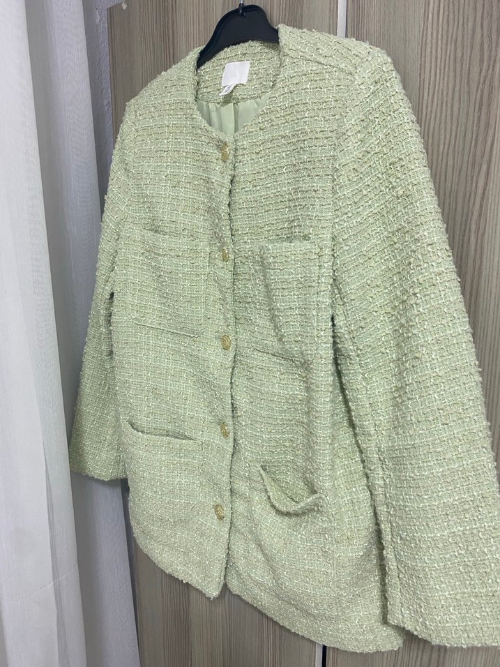 H&M Düğmeli Yeşil Midi Triko Kadın blazer ceket
