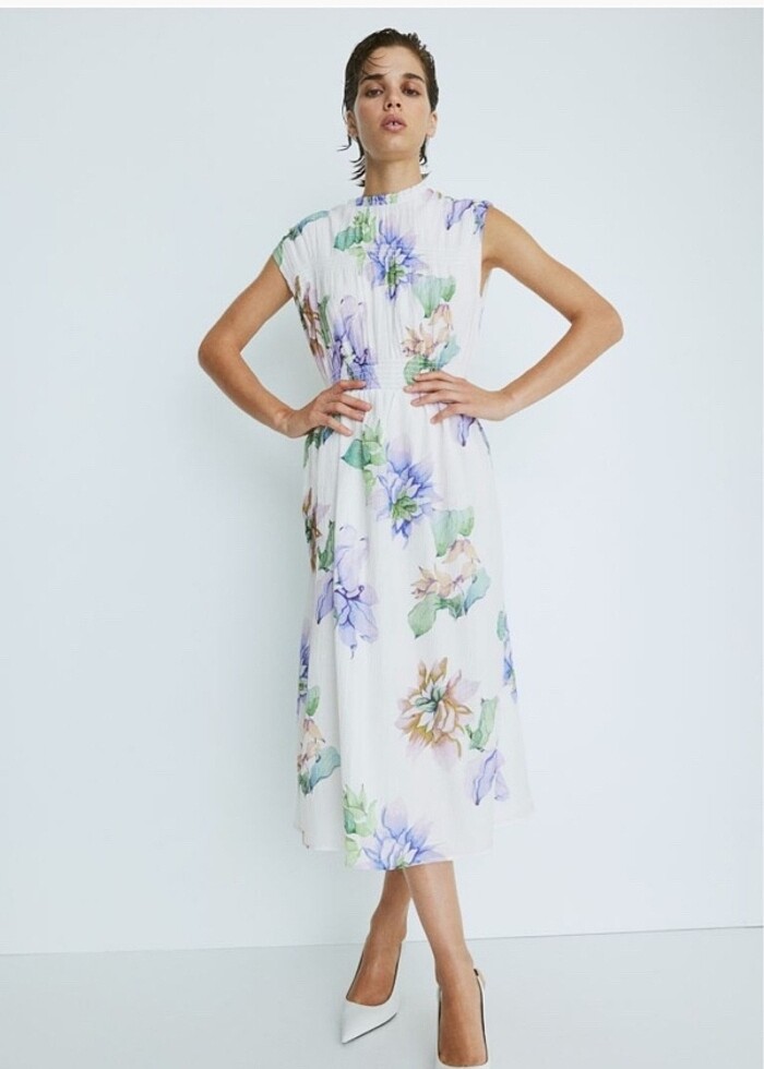 Beli lastikli büzgülü elbise. Sınırlı sayıda giyildi