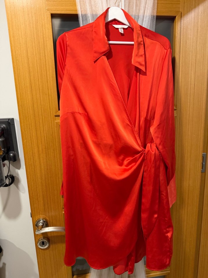 Parlak kırmızı renkte, uzun kollu elbise. Tesettürlü olduğum için tunik olarak kullandım.