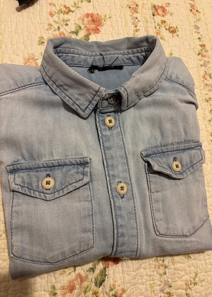 Pamuklu ince kot kumaş . İçine beyaz baskılı tshırtlerle önü çok çok güzel duruyor . Tertemiz 4-5 yaş