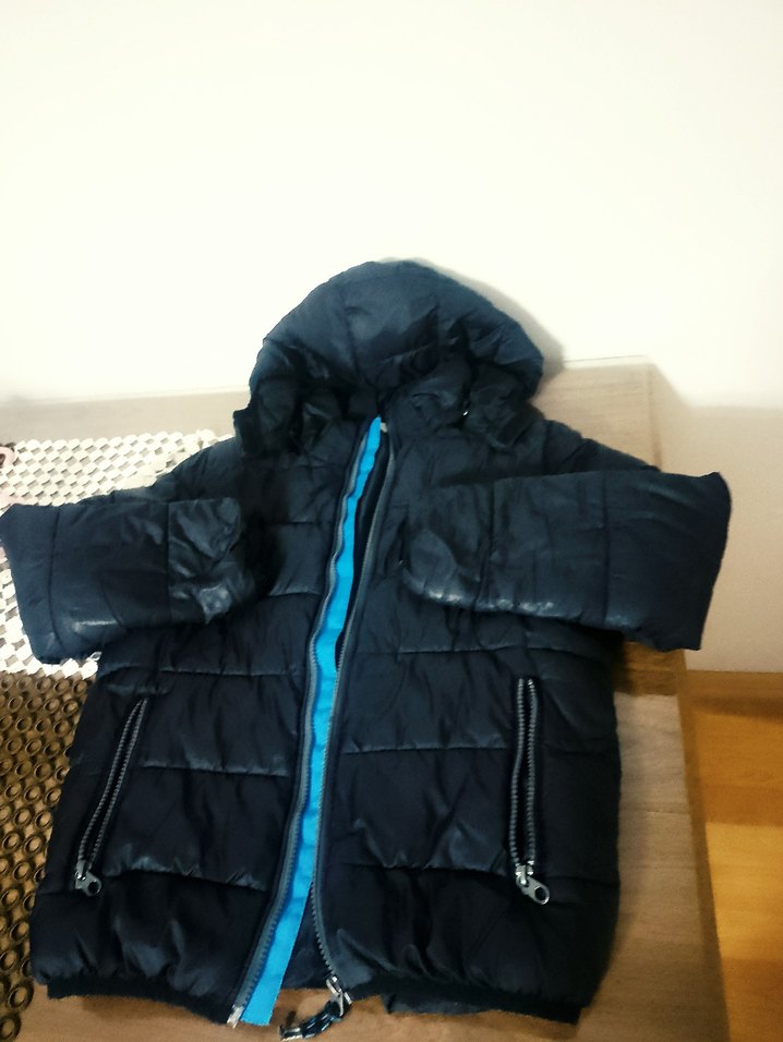 Siyah renkli, kapüşonlu ve fermuarlı erkek çocuk mont.10-11 yaş hiçnir sorunu yok