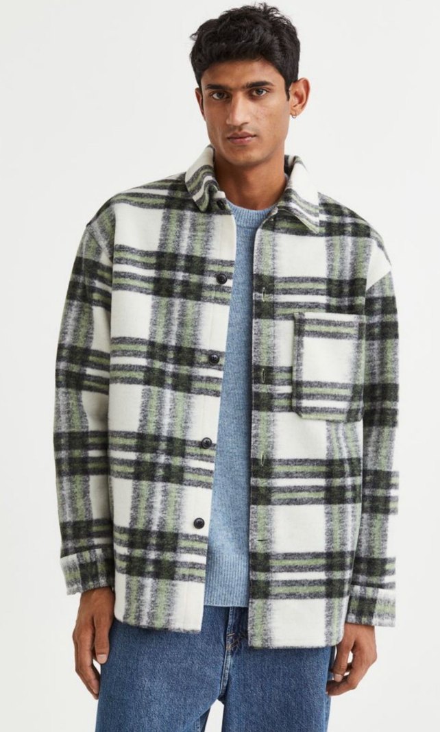 H&M Erkek Gri Kareli Düğmeli Gömlek ceket