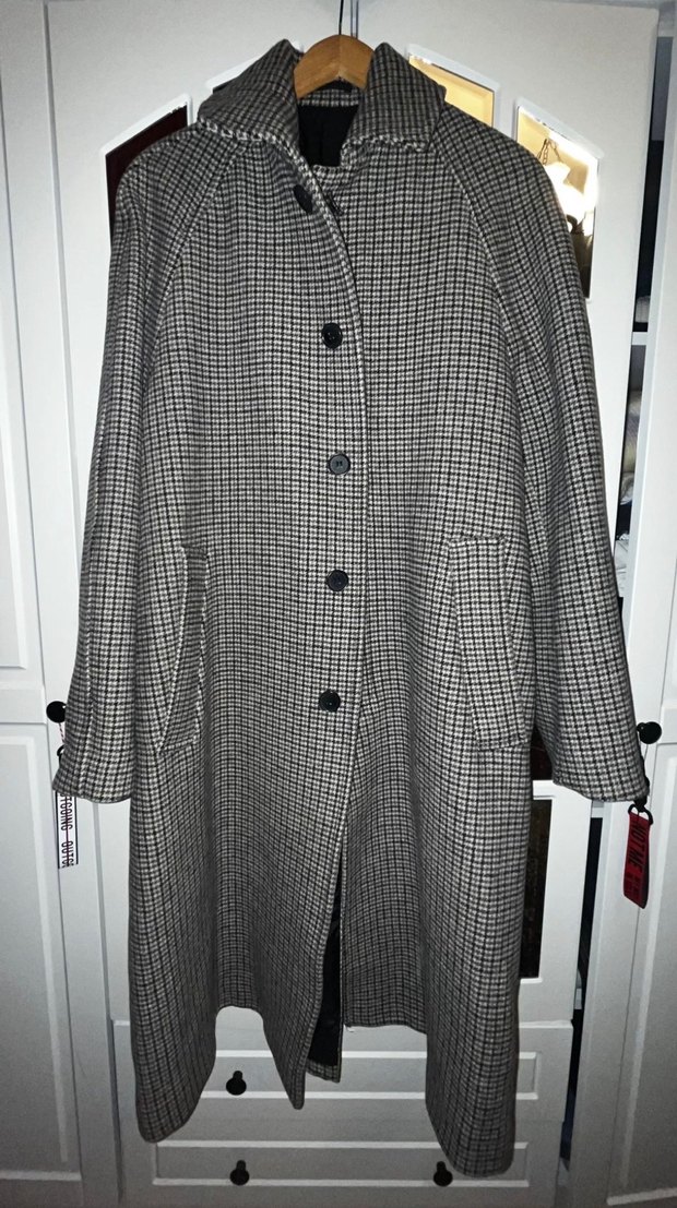 H&M Erkek Kaban - Yün karışımlı, desenli, astarlı. L beden. Max iki kez giyilmiştir. Hiç defosu yok tertemiz. Dış kısmında ve iç kısımda iki cebi var. Bol kesimdir. Ölçüleri: Uzunluk 114 cm , Genişlik 68 cm , Kol : reglan kol