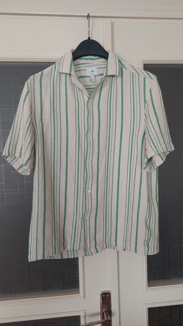 H&M Erkek Yeşil Keten Kısa Kollu Gömlek