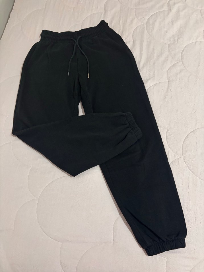 Yumuşak ve sıcak kumaştan, rahat kesim, lastikli bel ve paçalarla günlük kullanıma uygun siyah kadın eşofman altı.