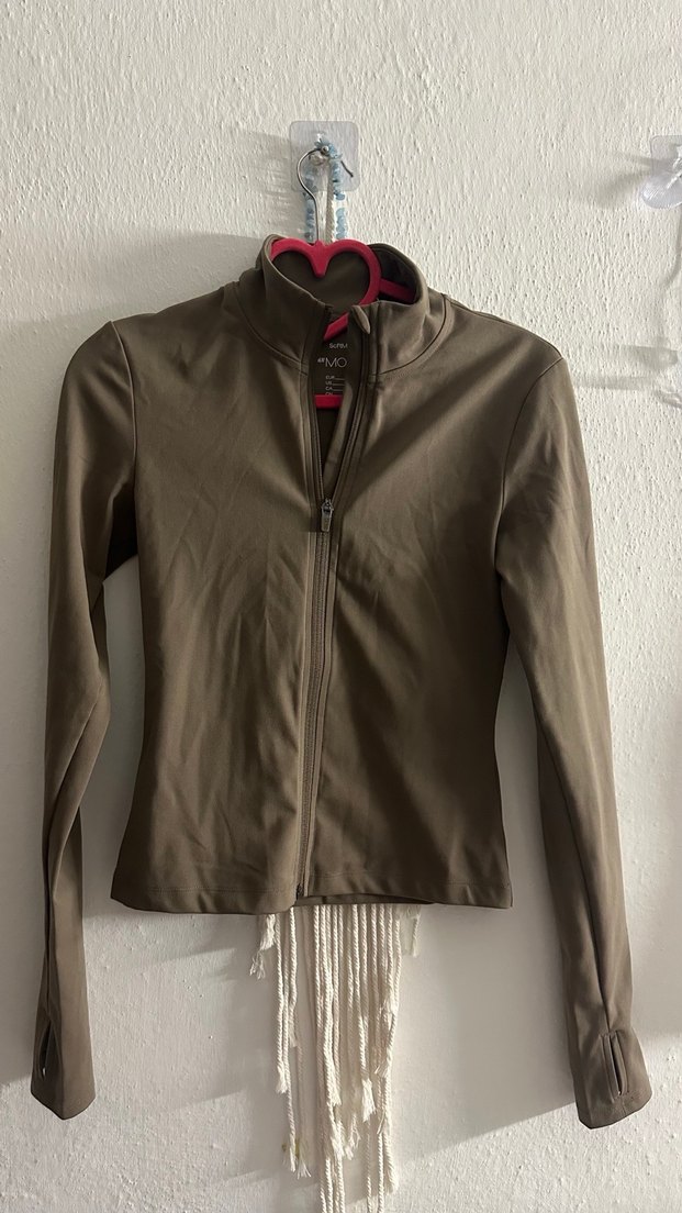 Fermuarlı, yüksek yakalı, uzun kollu ve vücuda oturan kadın ceketi. Bej renkte, sentetik kumaştan üretilmiştir. Günlük kullanım için uygundur. Çok az sayılı giyildi. Farklı rengini alınca giymemeye başladım. Tayt takımı da mevcut. İsteyene ikisi bir arada ilan açarım.
