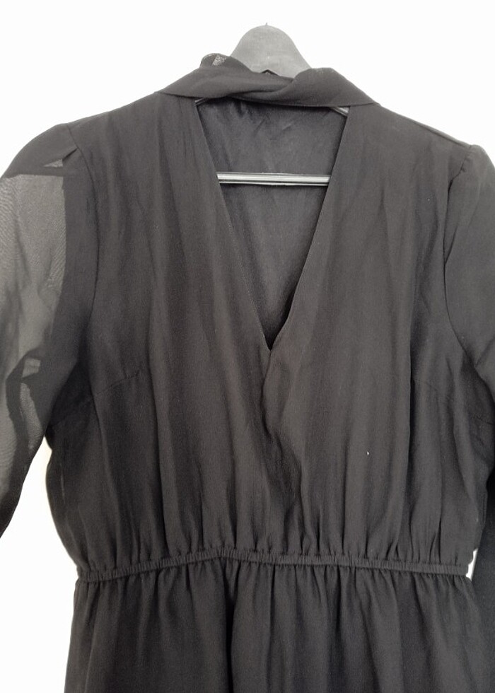 Üç dört kez giyilmistir. Boyu diz üstü -diz ölçüsündedir. Tüm elbise üzerinde tül mevcuttur. Astarlıdır. V yaka ancak boyun bölgesine kolye gibi bağlamak icin iki taraflı şerit bulunmaktadır.