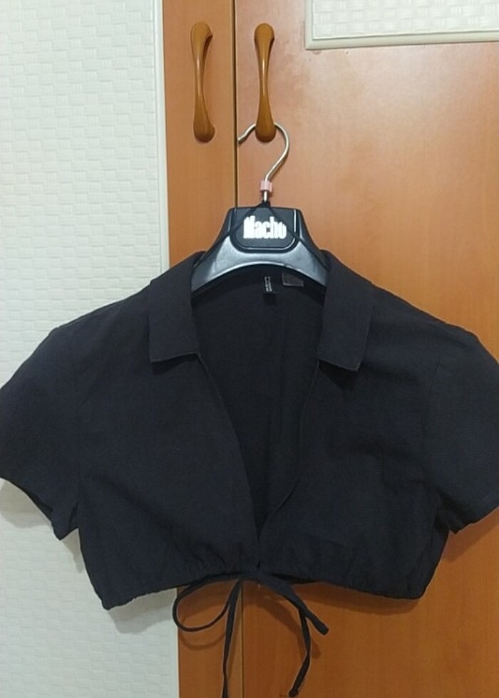 Neredeyse hiç giyilmedi,crop beli ipiyle sıkıştırılabilen siyah 0 pamuk