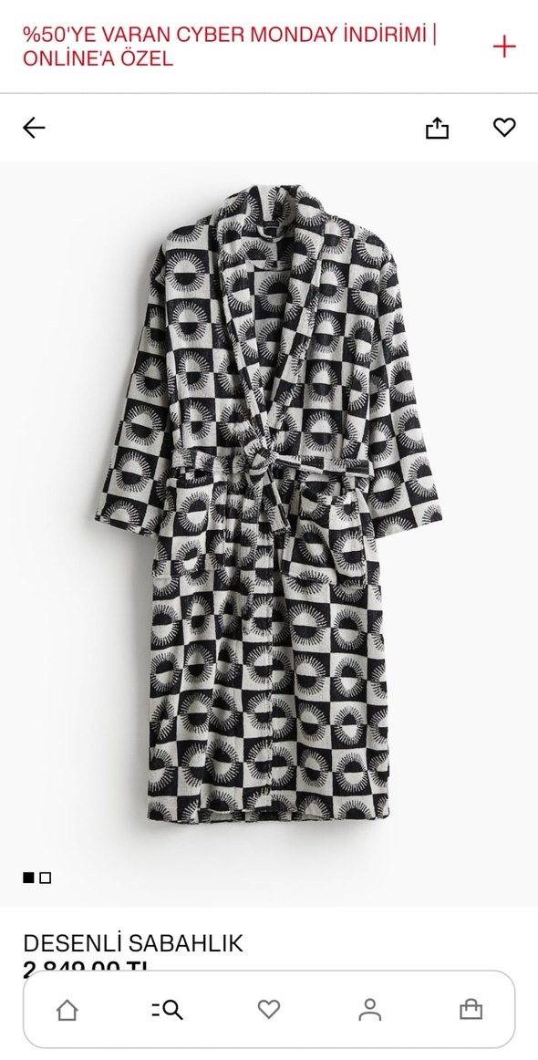 h&m Gri Desenli Uzun Sabahlık-bornoz