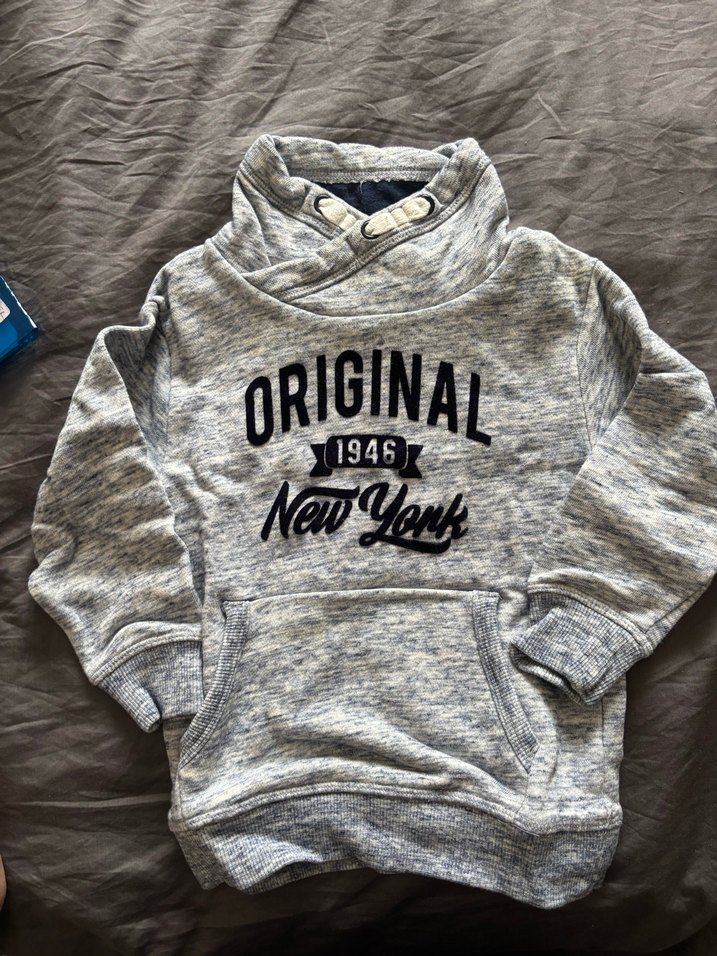 Gri renkte, yüksek yakalı ve uzun kollu erkek çocuk sweatshirtü. Yumuşak örme kumaştan, bol kesim ve 'ORIGINAL 1948 New York' baskılıdır. Rahat sokak stiline uygundur.