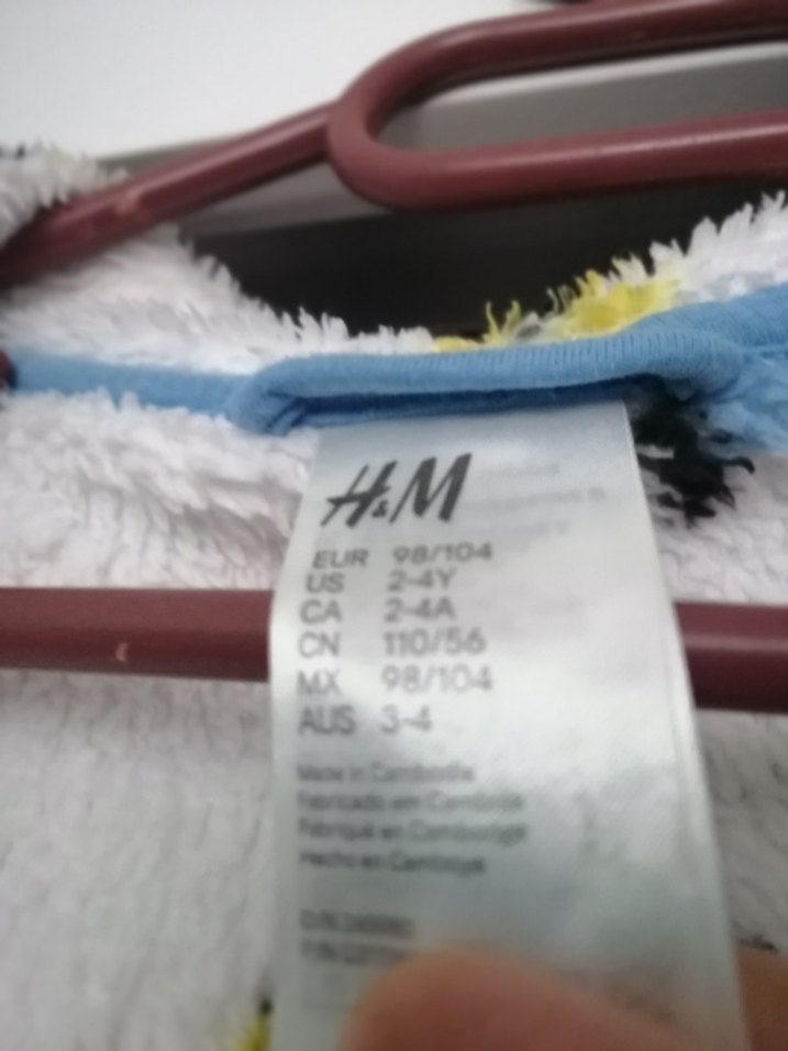 H&M markasına ait gri erkek rozeti, bohem ve spor tarzı yansıtır. Avant-garde ve modaya uygun bir tasarıma sahiptir. Etiket üzerinde 98/104, 110/56 ve AUS 3-4 beden bilgileri bulunur. 2 kol tuk arası 42 boy 65 polar yumus yumoş