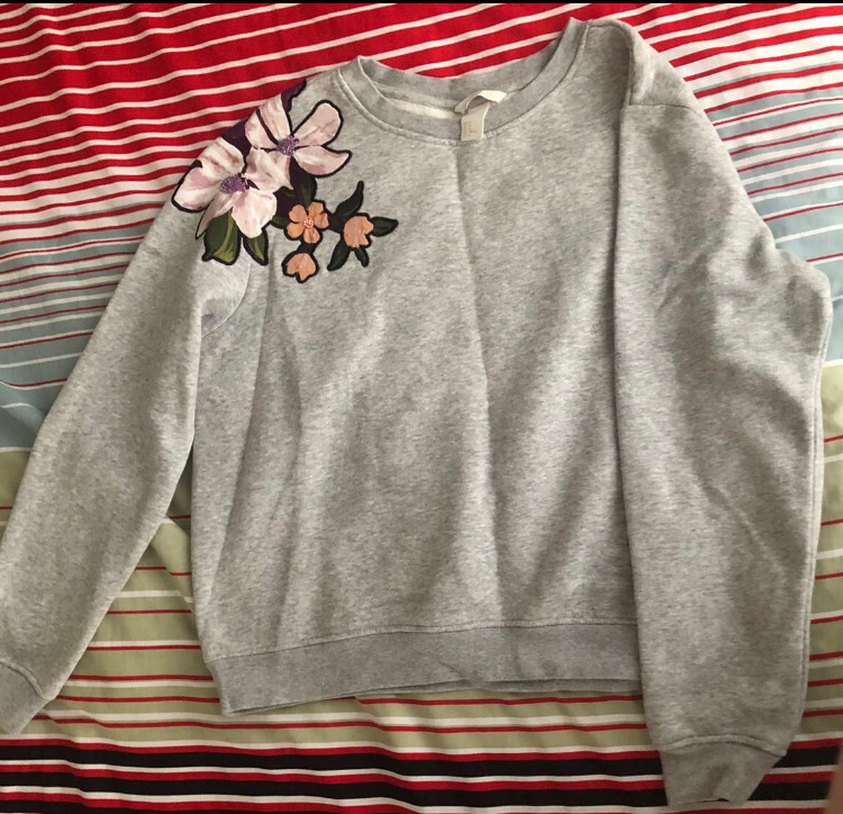 H&M Gri Nakışlı Uzun Kollu Kadın Sweatshirt