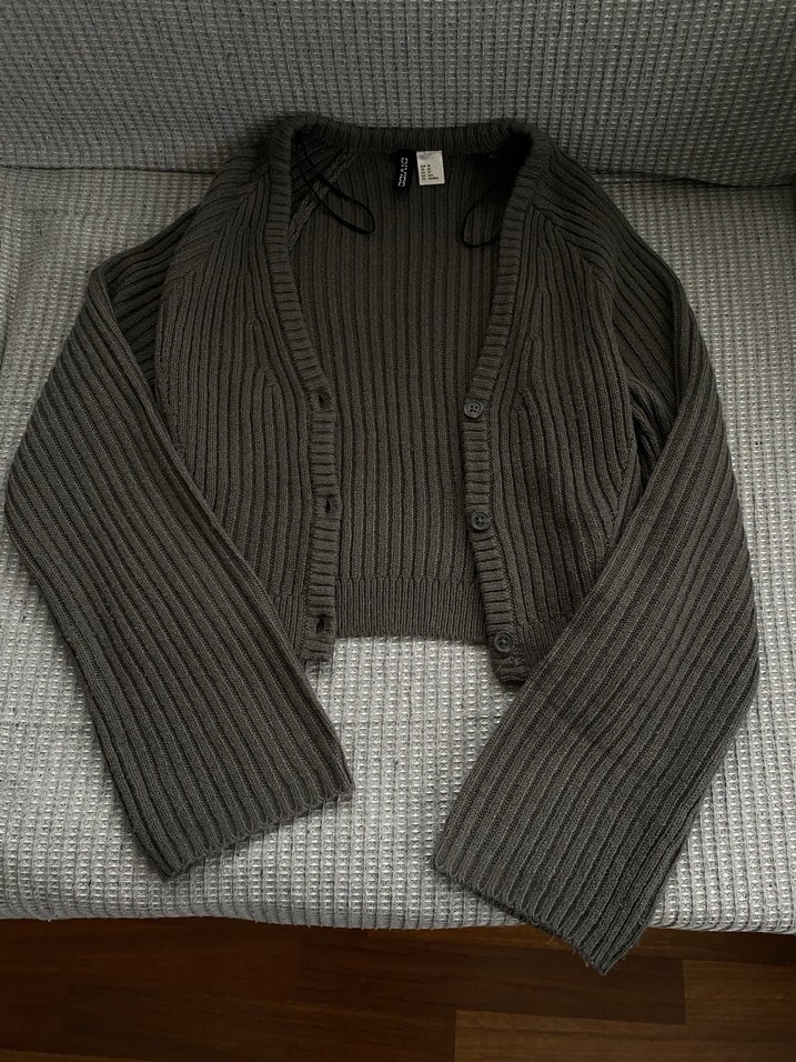 H&M Gri Örgü Kadın Hırka Uzun Kollu