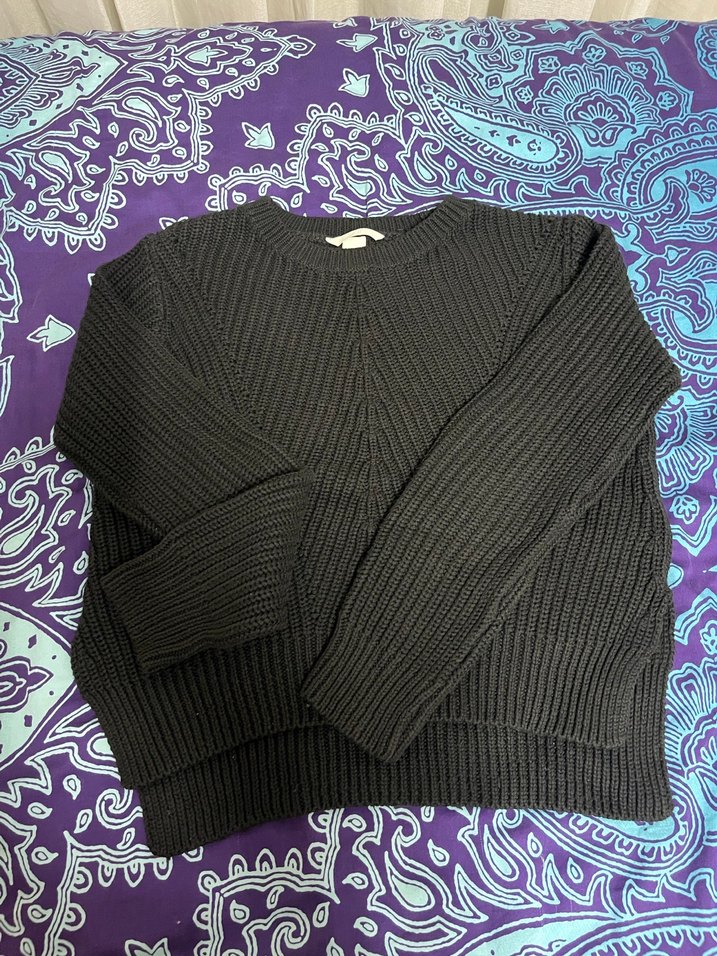Gri örgü, XS beden uzun kollu, salaş kesim kadın kazak. Normal boyda, crew yaka, günlük rahat goth tarzına uygun.