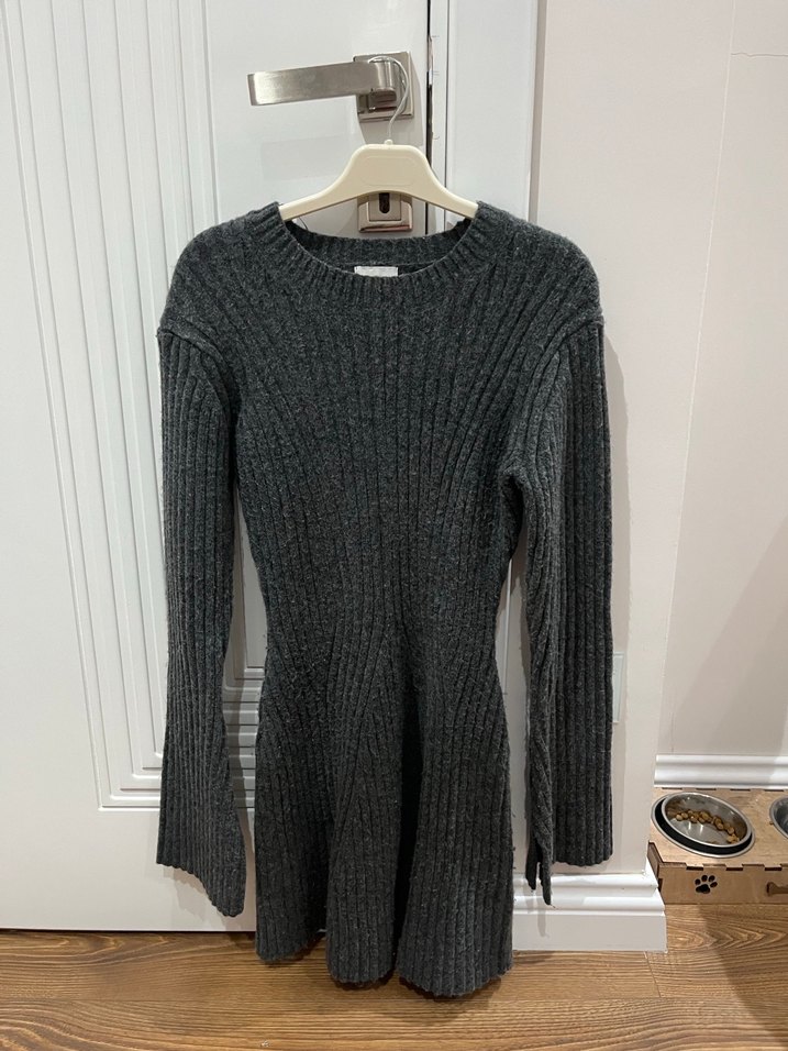 2-3 defa giyindim kusuru yoktur gri triko kadın elbise, uzun kollu ve bisiklet yaka. Mini boydur