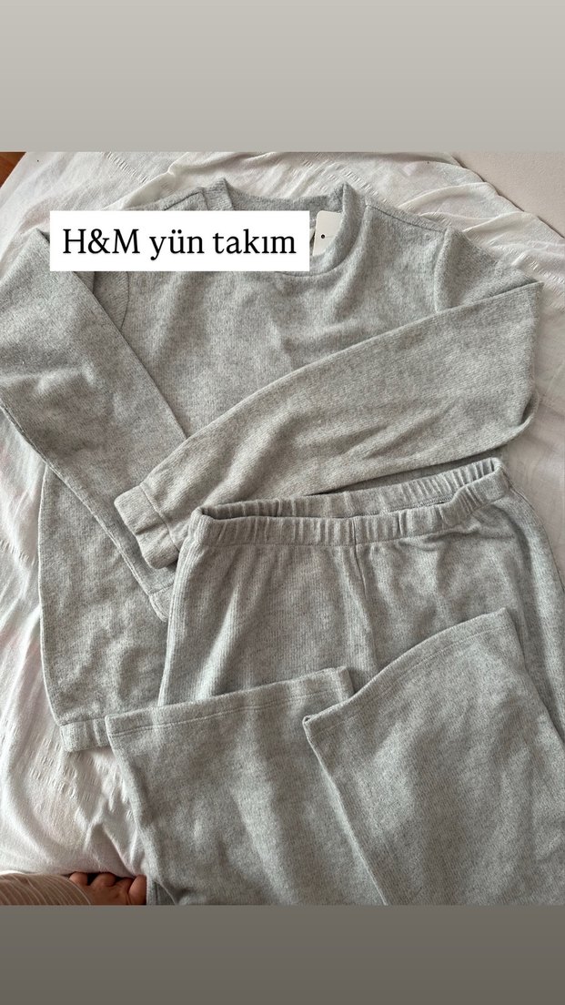 H&M pofidik yün takım, yumuşacık bol kesim ve bisiklet yaka detaylıdır. Uzun kollu ve normal midi boy uzunluğundadır, sade ve rahat bir stil sunar. İhraç fazlası olup etiketli ve orijinaldır. Sadece marka etiketi kesiktir. L-XL bedene uygundur