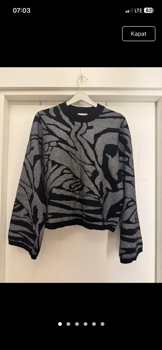 H&M Gri Zebra Desenli Kadın Triko Kazak