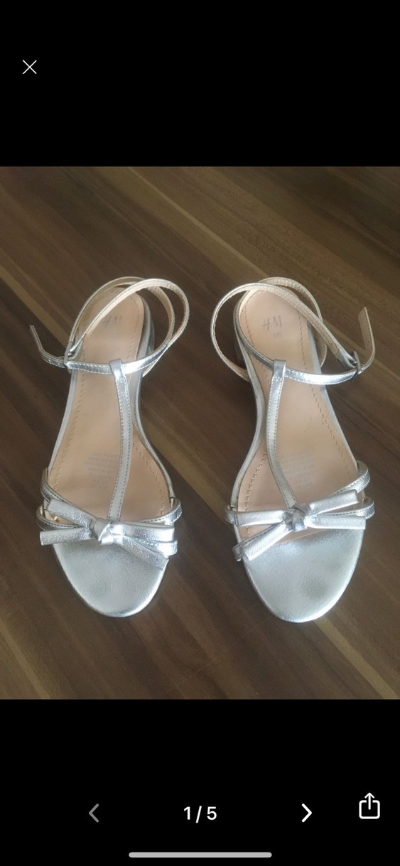 H&M Gümüş Renk Kısa Topuklu Kadın Abiye Ayakkabı