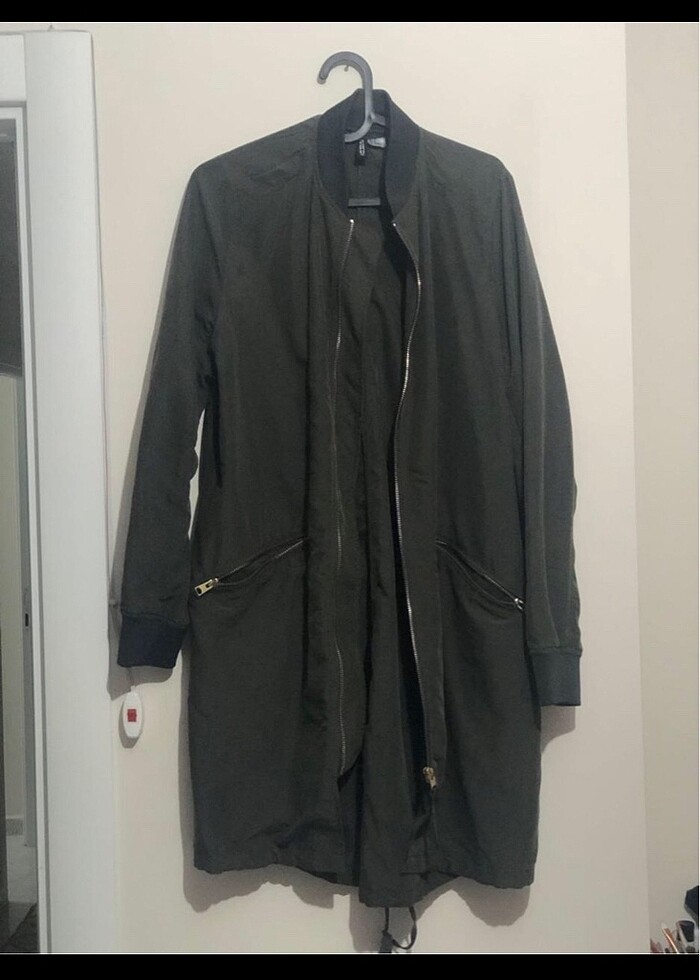 H&M 38 beden haki renk trençkot hakim yaka çok az kullanıldı astarsız formda uzun boy