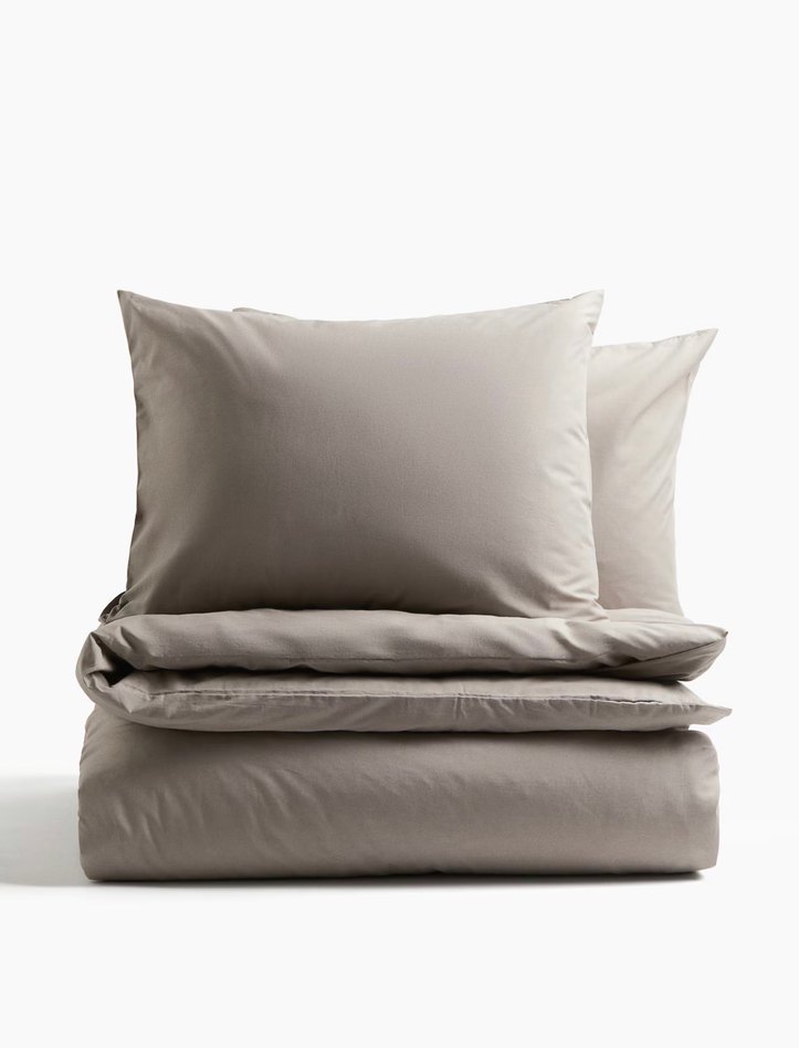 H&M HOME ÇİFT KİŞİLİK Bej Gri Düz Nevresim Takımı