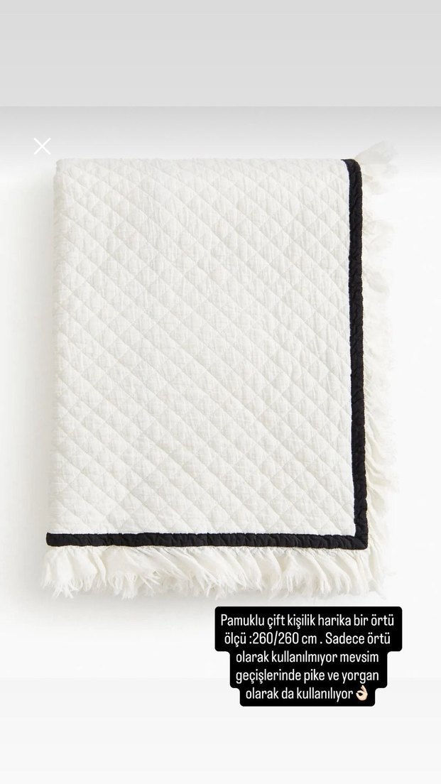 Çift kişiliktir Yumuşak dokulu, hafif desenli beyaz yatak örtüsü, gri şeritli püsküllü kenarlarla şık ve rahat bir görünüm sağlar ️.